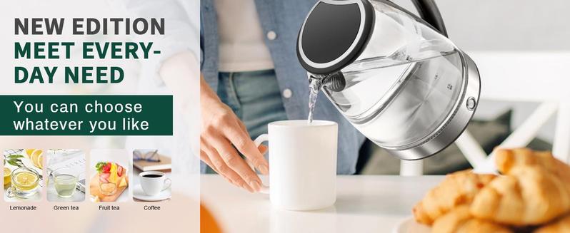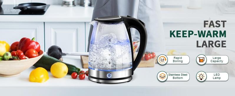 - 【Family's First Choice】 This electric water kettle is made of BPA-free high borosilicate glass. Dry boil protection and overheating protection features ensure the safety of your family. With a safe electric water kettle, drink healthy water, and live a comfortable life.